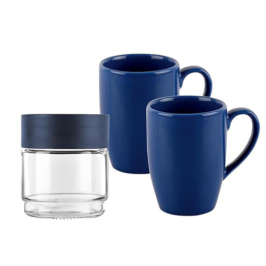 R Cello Gift Set of 1 Glass Jar and 2 Mugs SKUCOM003