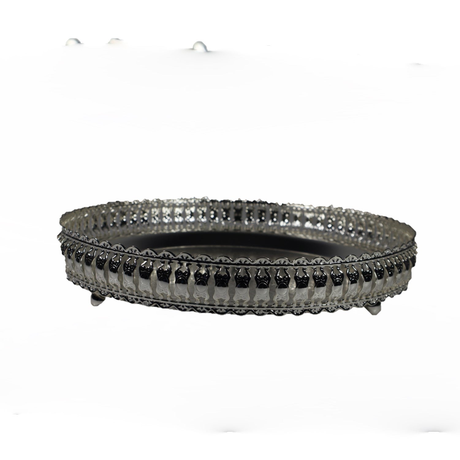 Elevate your home decor and pooja rituals with our stunning German Silver Round Flower Decoration Tray! Crafted with intricate floral designs and measuring at a perfect 2.5 inches, this tray adds a touch of elegance to any space.